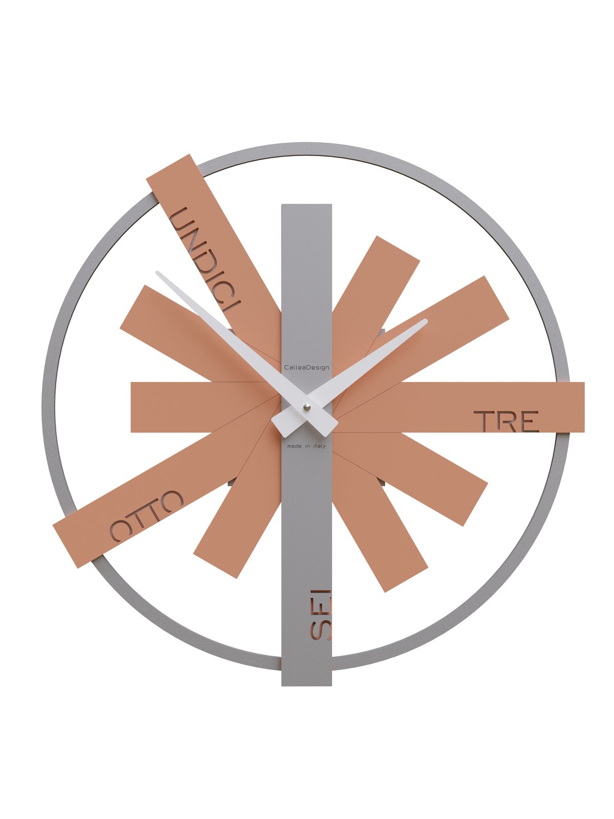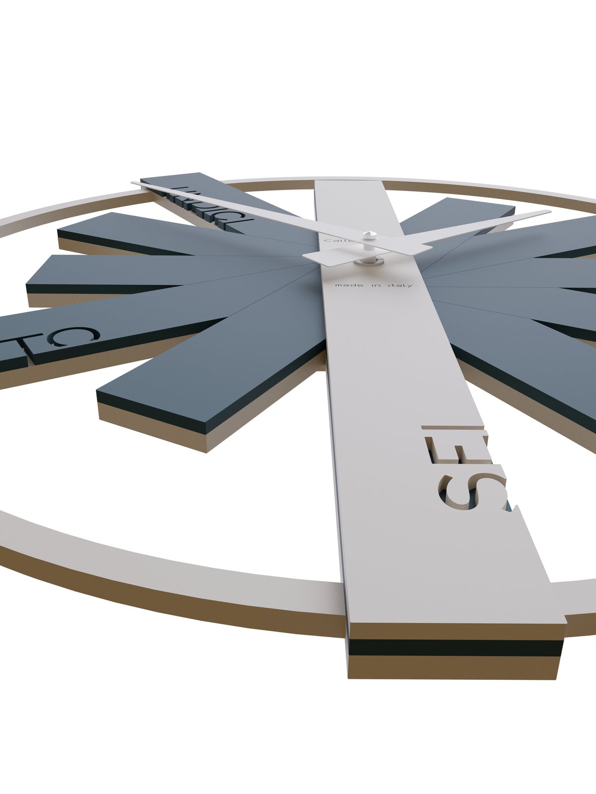 The Astra wall clock is distinguished by a geometric and sculptural aesthetic, combining modernity and creativity in a unique design. The central structure expands into asymmetrical spokes that serve as numerals, each of which is characterised by a minimalist and linear design, lending dynamism and originality to the dial.
