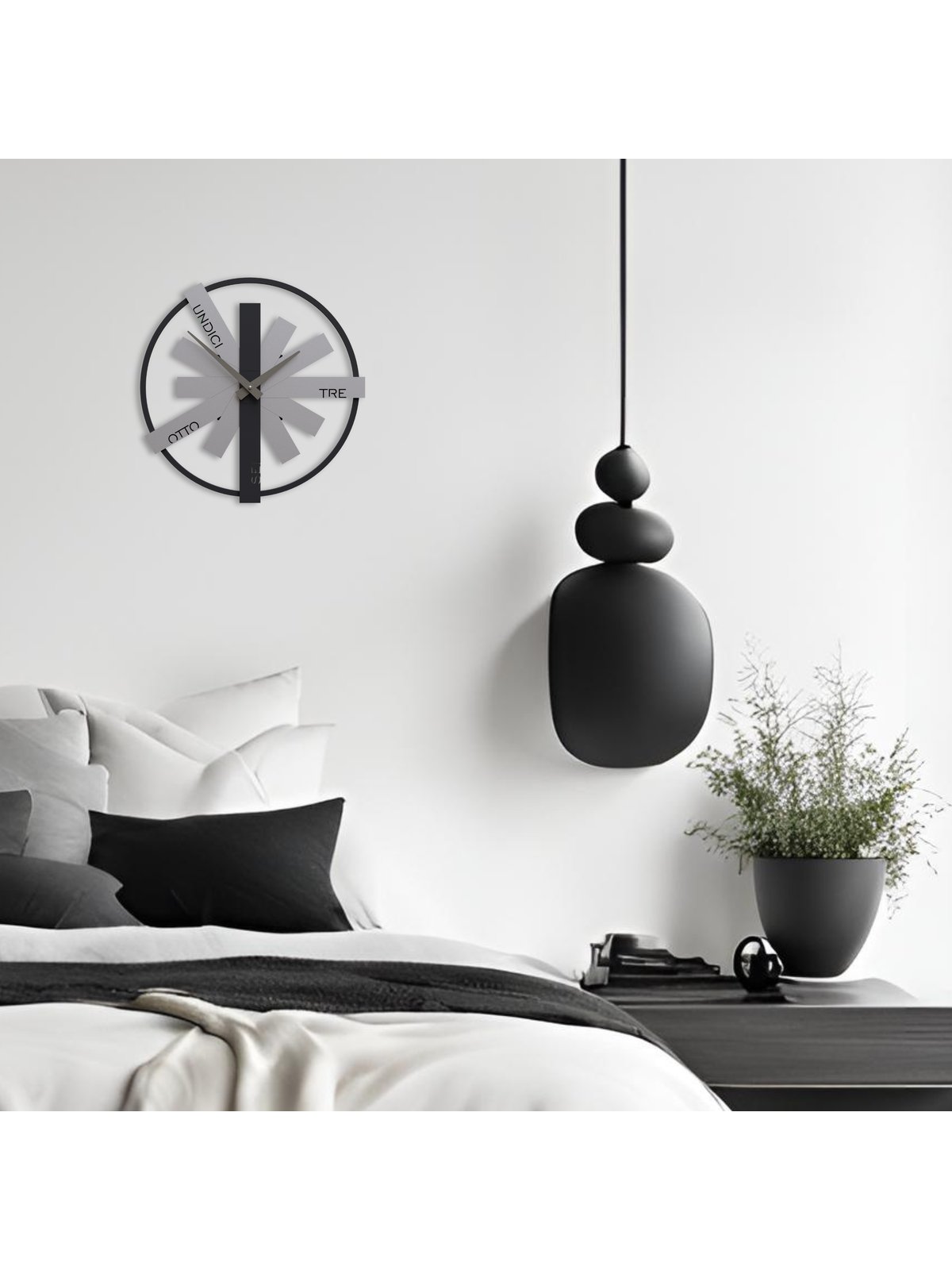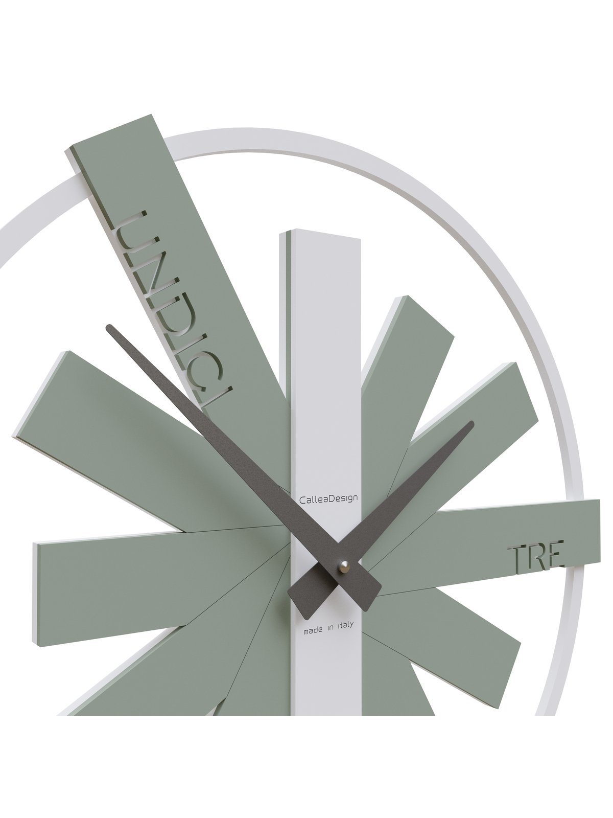 The contrast between the clear, clean hands and the background structure creates a harmonious visual balance that stands out on walls of any colour. The circular frame enclosing the entire composition lends cohesion to the design and helps to frame the dynamic movement of the shapes, accentuating the three-dimensionality of the clock.