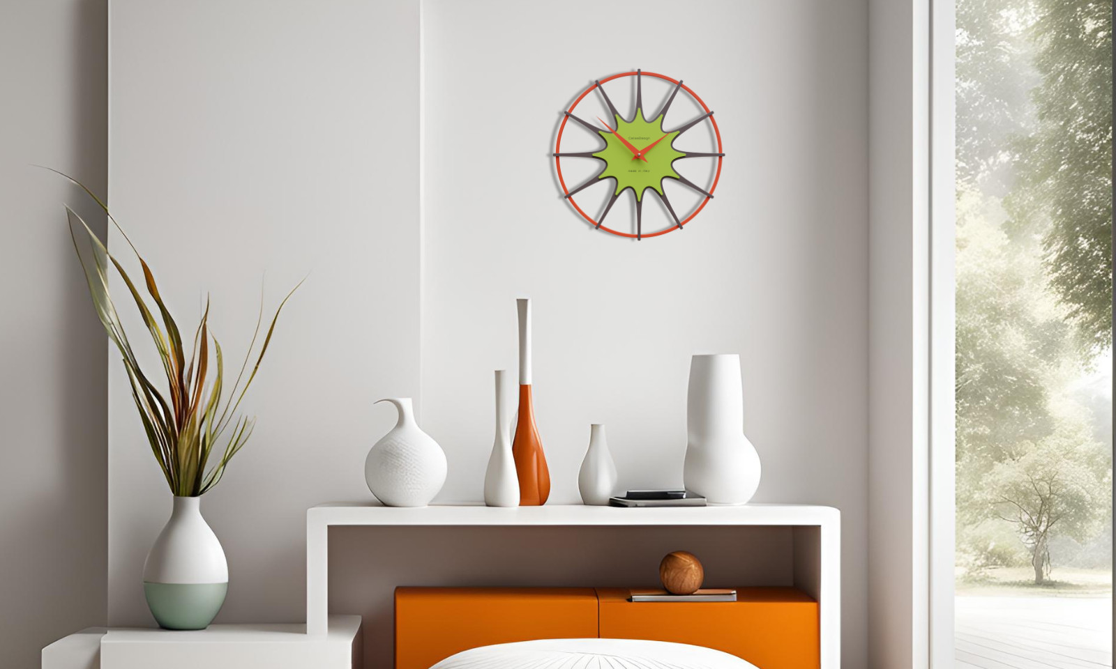 The Stella wall clock is a contemporary design creation that manages to fuse functionality and style in a unique object. With a diameter of 33 cm, also available in a larger 48 cm version, this clock immediately catches the eye with its dynamic shape and sophisticated details. The radial design, with lines radiating out from the centre, is reminiscent of the rays of a star, giving the room a modern and light touch.