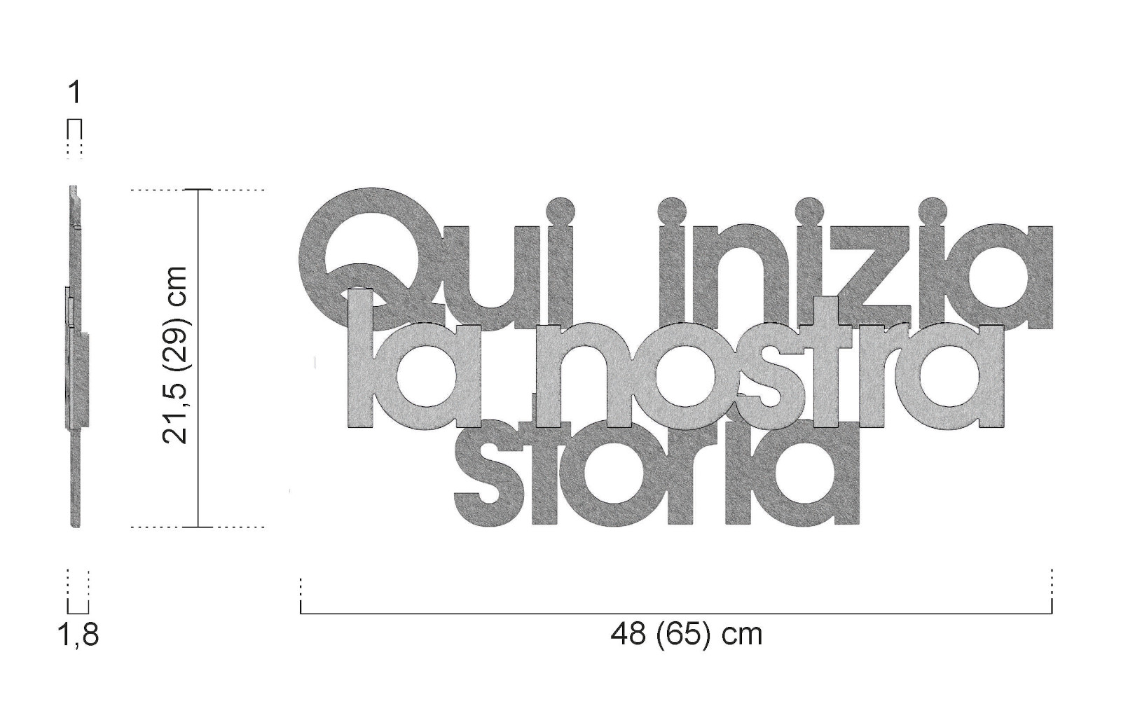 WHAT MAKES US UNIQUE Our added value lies in the elegance and quality that characterises each of our products. All inscriptions are made in two colours, a design intended to make reading more pleasant and visually appealing. Each lettering varies in thickness from 6 to 10 mm, with the edges painted the same colour as the surface, creating a three-dimensional effect that stands out from traditional stickers. Mounting 8 mm from the wall generates a refined shadow effect that further enhances the final result. The finish of the lettering is impeccable, both in shape and paint quality, guaranteeing a product of the highest quality.
